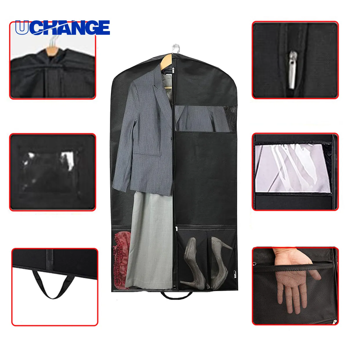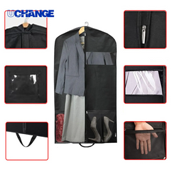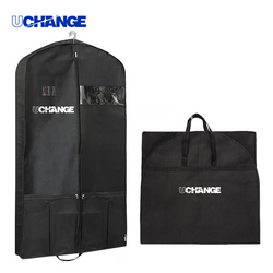 Protect suits, dresses, and uniforms on the go with this water-resistant hanging garment bag. A full-length zipper provides quick access, while two lower shoe pockets and upper accessory compartments keep outfits organized. The reinforced top handles and bottom loop make folding and carrying simple, and a clear ID window helps with check-ins or closet sorting. Ideal for corporate travel programs, weddings, hospitality teams, and dry-cleaner services, it decorates cleanly with your logo for polished brand visibility from home closet to hotel room.