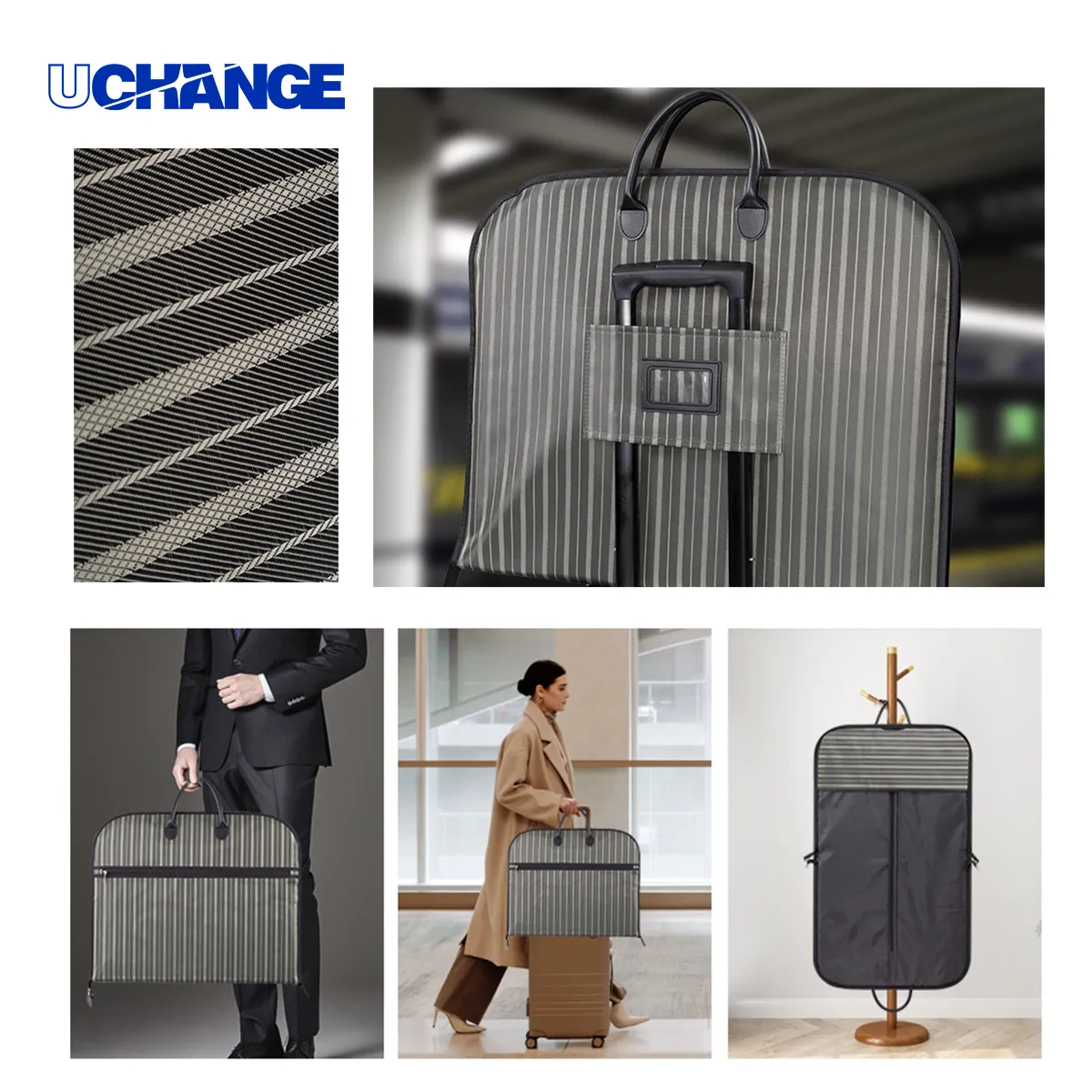 Additional InformationZippered travel garment bag in durable non-woven fabric with top handles, luggage pass-through sleeve, and fold-flat storage.